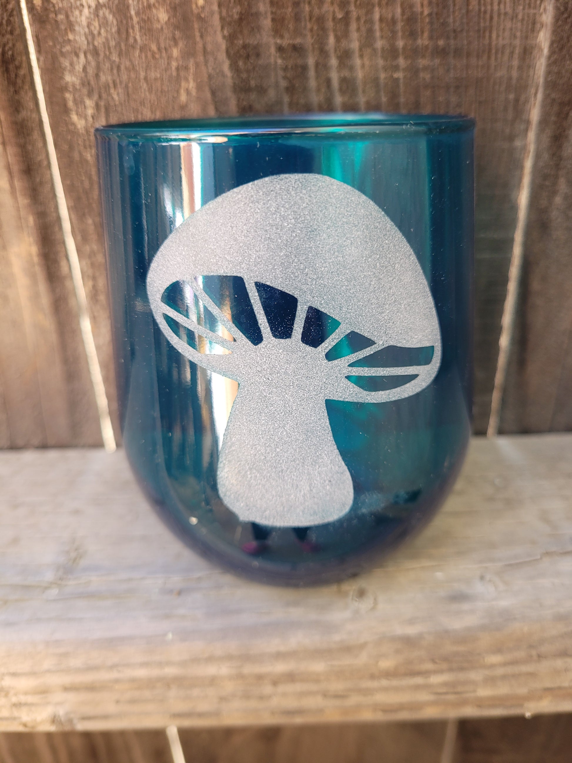 Toadstool/mushroom stemless green wine glass